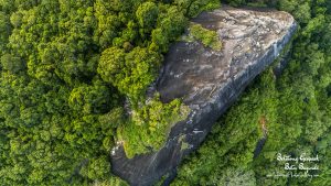 Geologically, the hills are made of adamelite, a type of I-type granite that is different from Belitong’s famous tin-bearing granite. Unlike typical granite, which contains abundant quartz (20–40%), adamelite has less quartz (only 5–20%) but is rich in hornblende, a black mineral with large, striking crystals. The rock also contains feldspar, plagioclase, biotite, and secondary minerals such as carbonate, limonite, and iron oxide. These mineral compositions give the hills a distinctive appearance and make them an important representation of I-type granite in Belitong UNESCO Global Geopark.